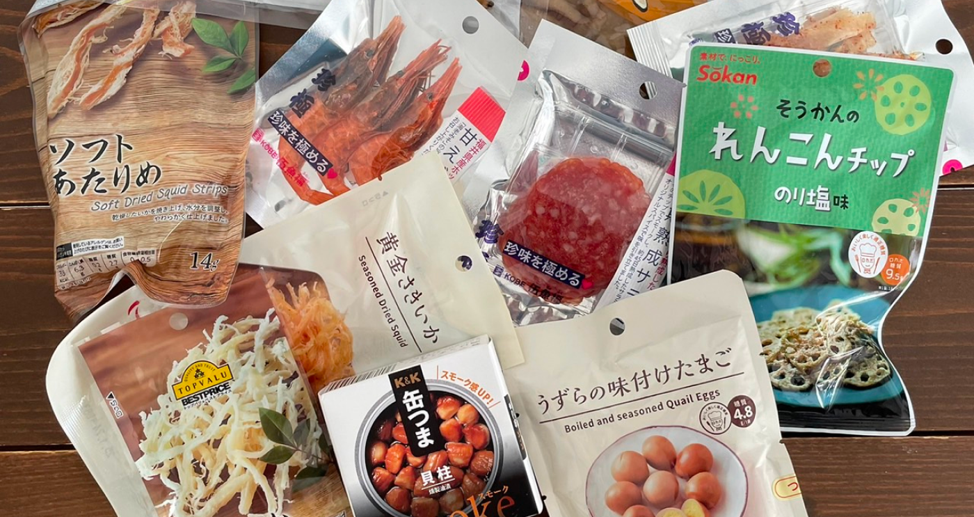 For example, dried food such as surume (dried squid) and dried small fish. Dried fruits, nuts, snacks, etc.